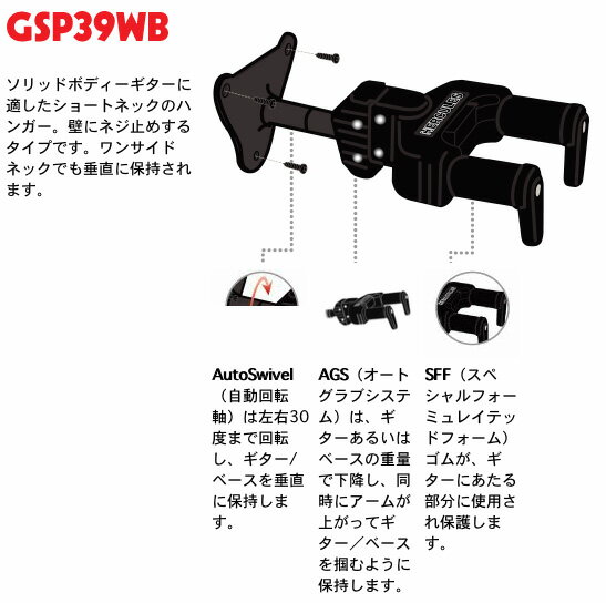 HERCULES/GSP39WB(ギターハンガー・ショート) 価格: 1,490円 レビュー評価: 0.0 レビュー数:0 ソリッドボディーギターに適したショートネックのハンガー。壁にネジ止めするタイプです。ワンサイドネックでも垂直に保持されます。AutoSwivel(自動回転軸)は左右30度まで回転し、ギター/ベースを垂直に保持します。AGS(オートグラブシステム)は、ギターあるいはベースの重量で下降し、同時にアームが上がってギター/ベースを掴むように保持します。SFF(スペシャルフォーミュレイテッドフォーム)ゴムが、ギターにあたる部分に使用され保護します。 Supported by 楽天ウェブサービス |